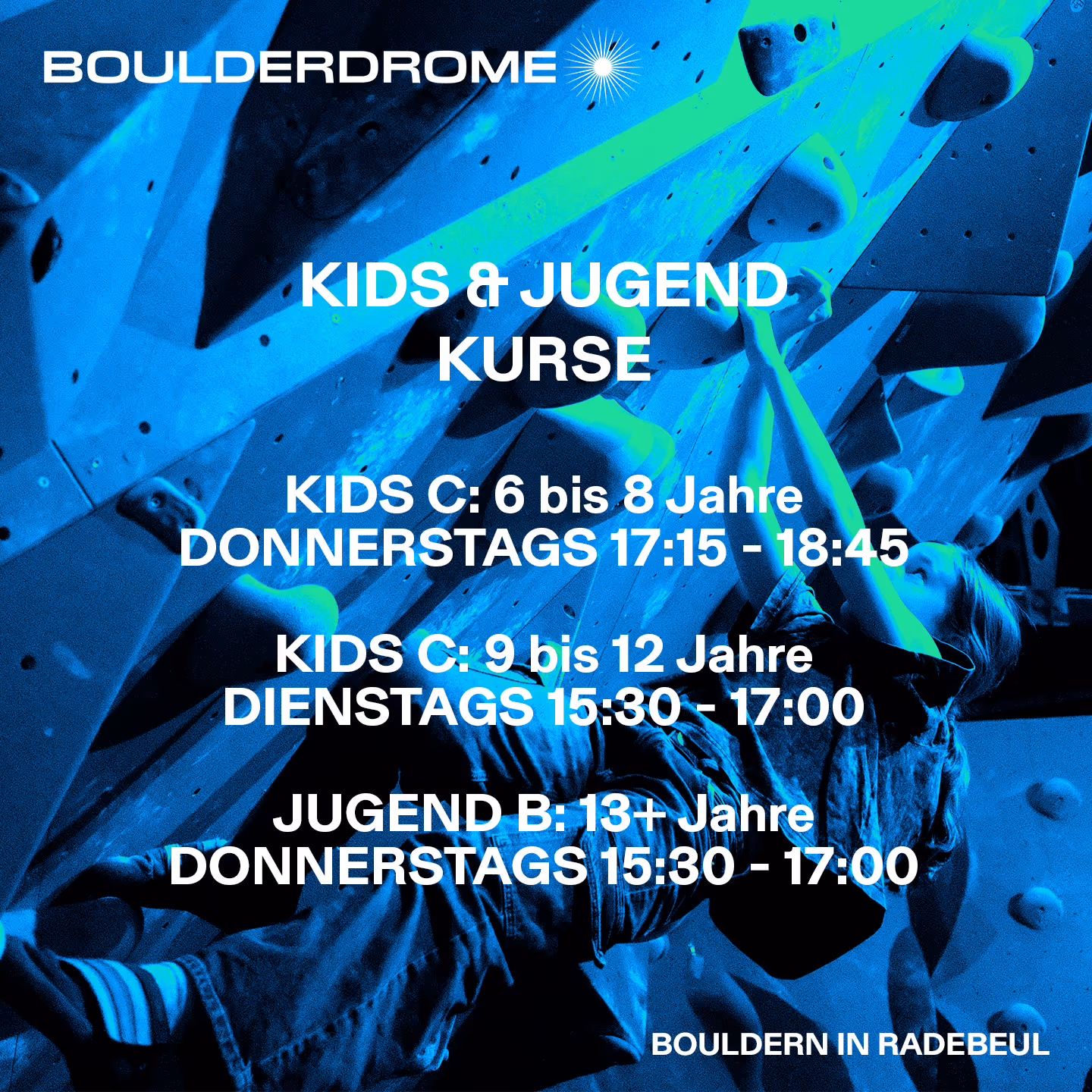 Kinder, die älter als 13 Jahre sind, können mit der Erlaubnis der Erziehungsberechtigten alleine bouldern kommen.